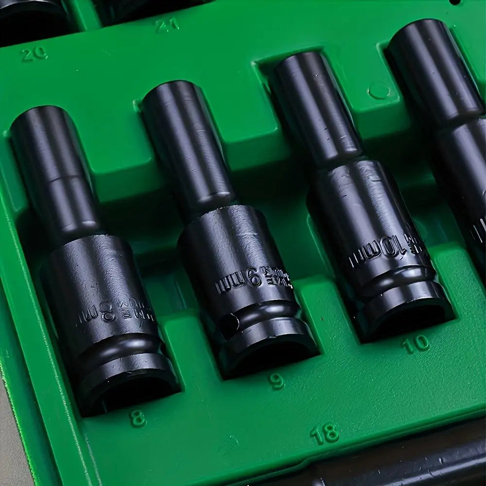The SmartGearPros 1/2-Inch Drive Hex Sleeve Set is built to handle the toughest jobs. With 20 precision-machined sleeves in a compact case, you’re ready to take on nuts, bolts, and fasteners like a pro.