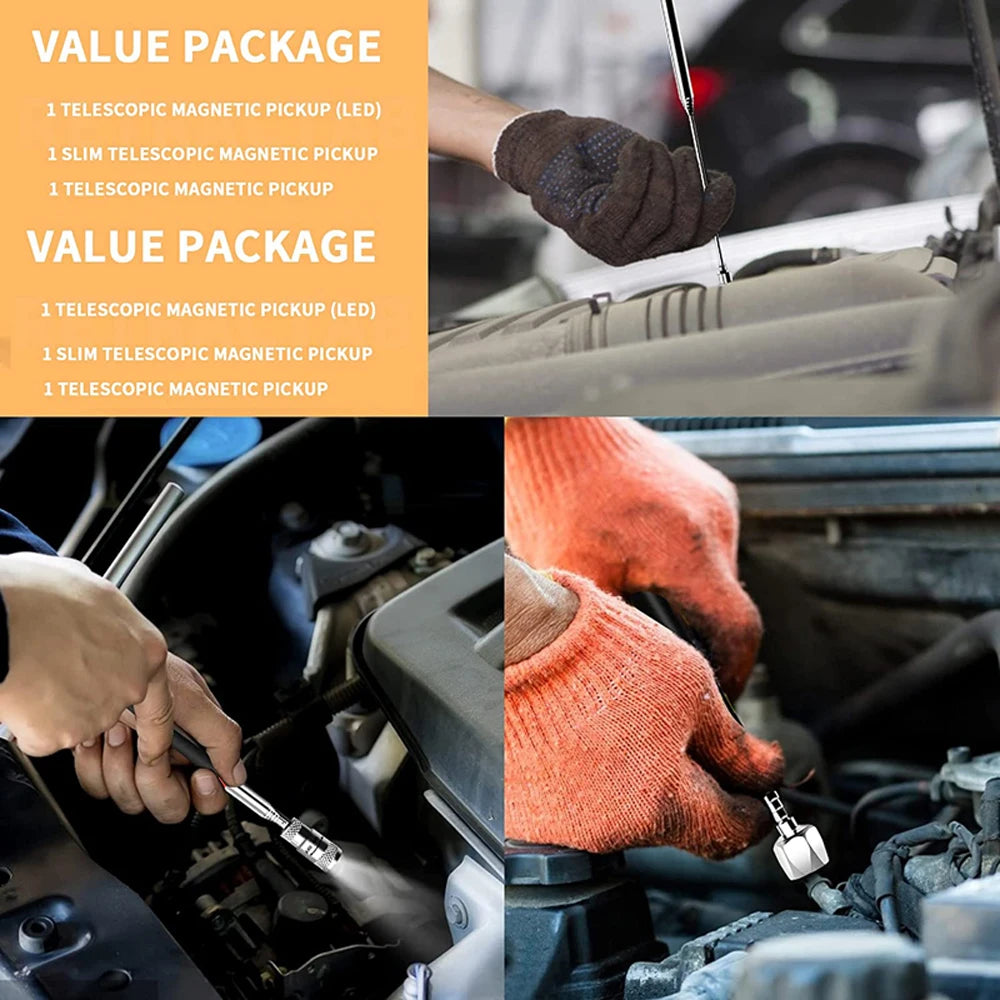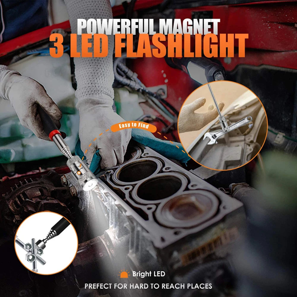 🔹 For The Prepared Fixer 🛠️ – You’re the go-to guy when things break. With this extendable magnet and built-in LED light, you’ll be the hero every time—whether rescuing a lost screw from a dark engine bay or retrieving fallen tools from tight spaces.