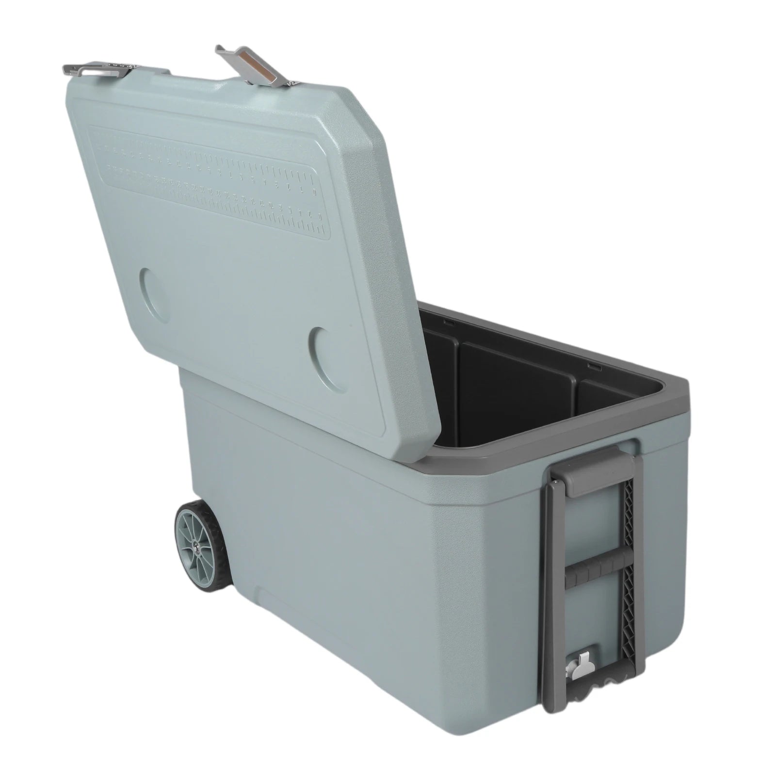 Picture This: Beach day. 70L cooler loaded with drinks and food. 30% lighter than rotomolded. Wheels rolling smoothly. Handle pulling easily. Ice staying cold. Camping trip ready. Fishing expedition stocked. Portable car wheel insulator. Plastic cooler box durable. Easy transport achieved.