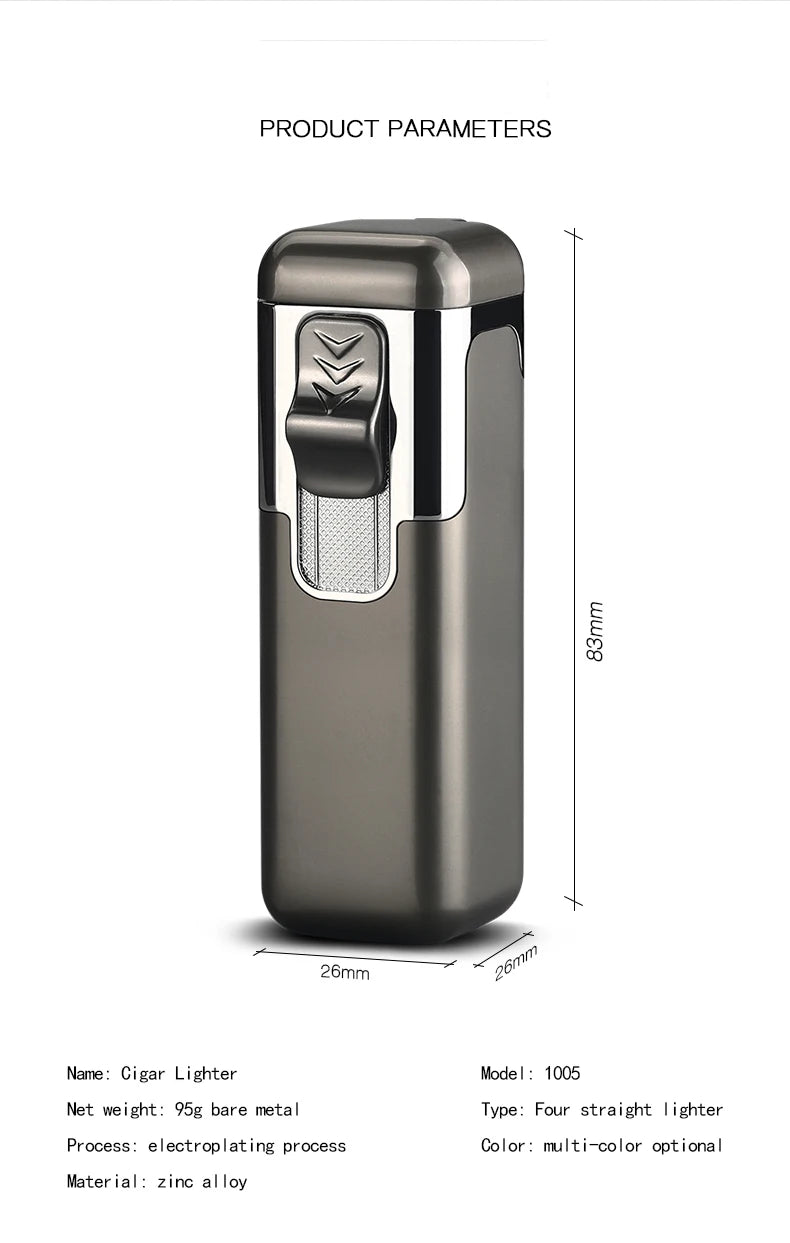 Windproof quad-jet design ensures ignition even in harsh conditions.