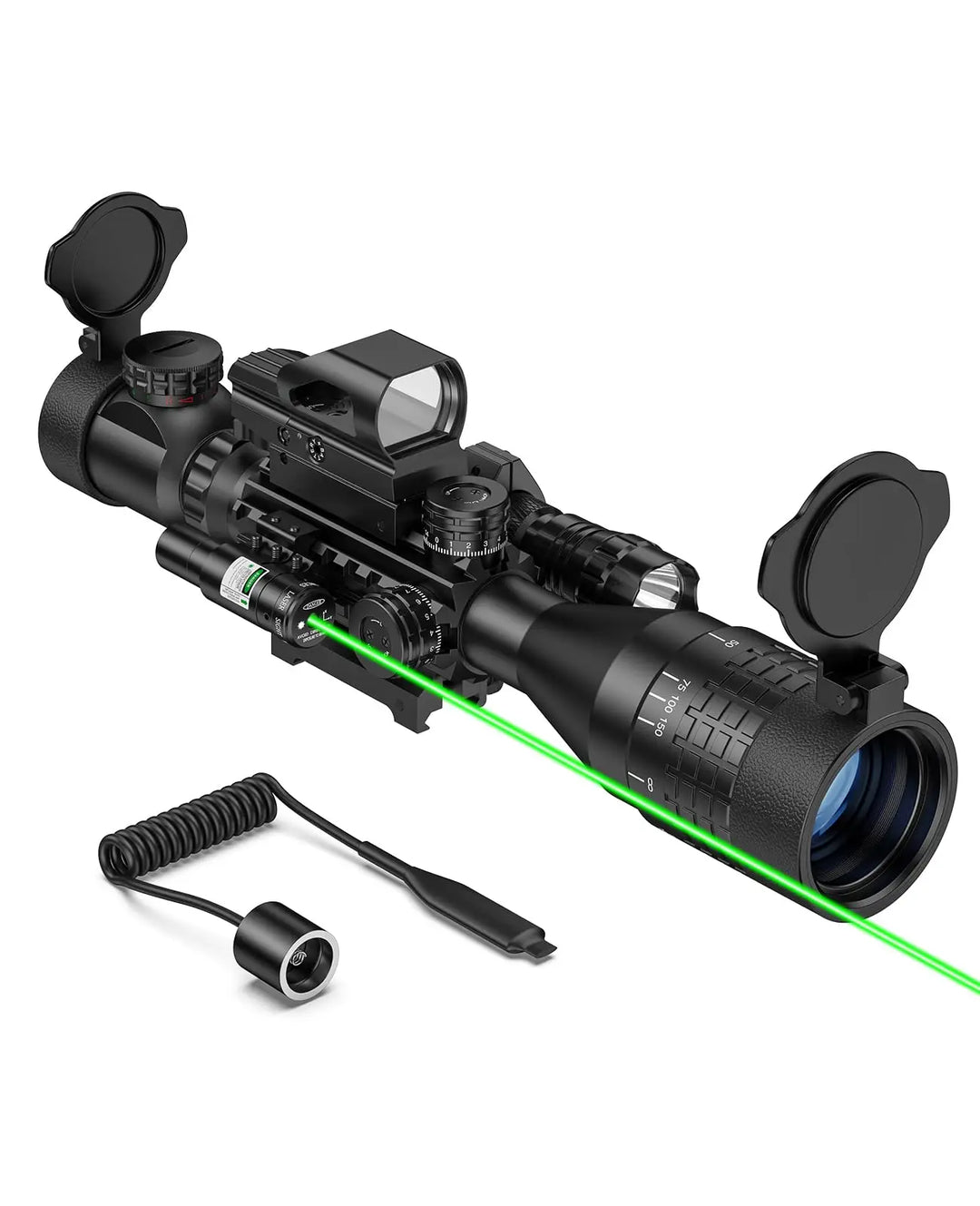 4-16x50 AO Rifle Scope Combo – Rangefinder, Red Dot & Green Laser
