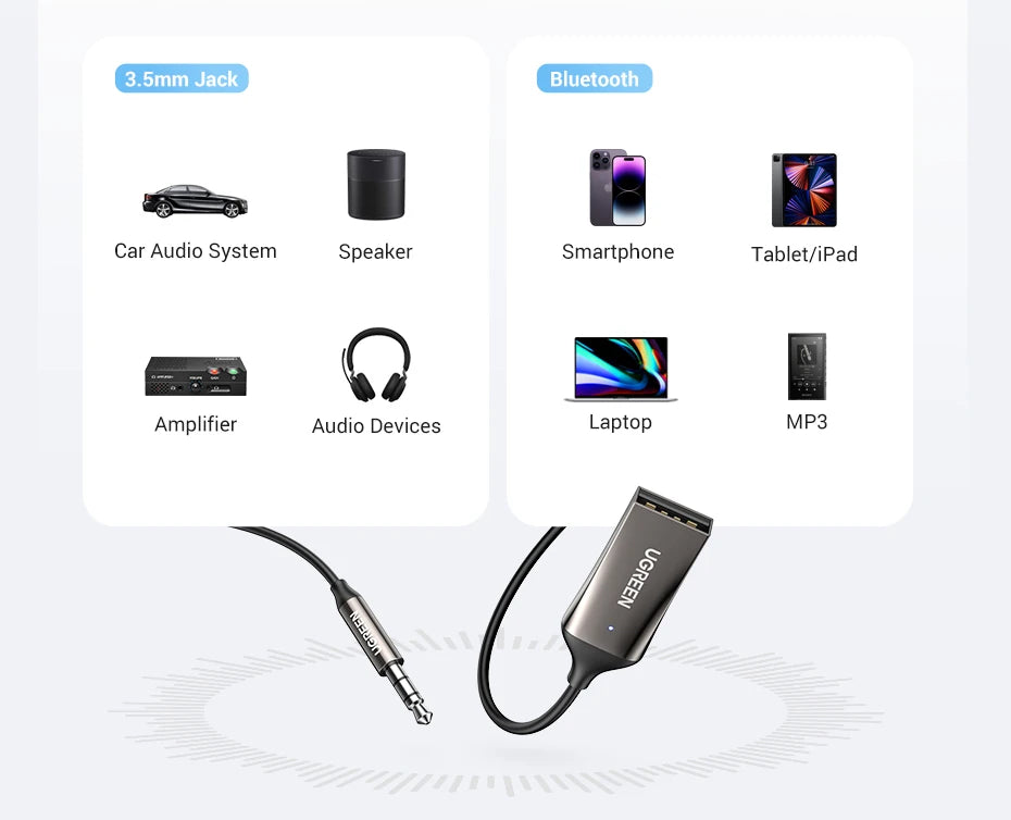 Turn your car into a smart vehicle with the SmartGearPros Bluetooth 5.3 Adapter by UGREEN. Designed for crystal-clear calls and seamless streaming, this device brings modern tech to any ride, instantly. 🎧 Hi-Fi Music + Clear Calls